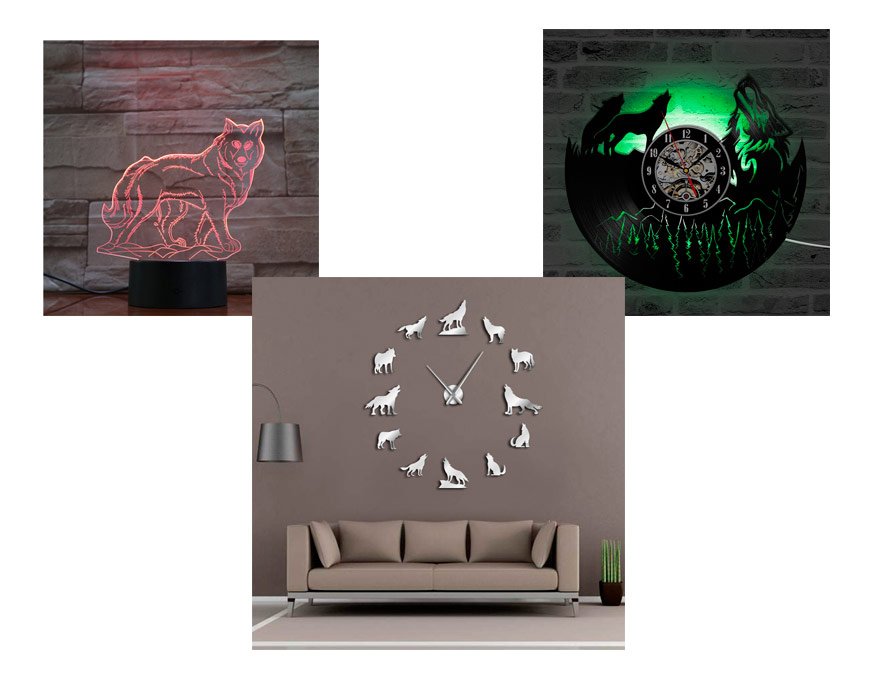 En la antigüedad las aldeas y campamentos eran protegidos por figuras representativas de lobos talladas de piedra o madera. Hoy incorporamos al lobo mediante estos tótems como son relojes de pared, lámparas, cojines, murales, etc.