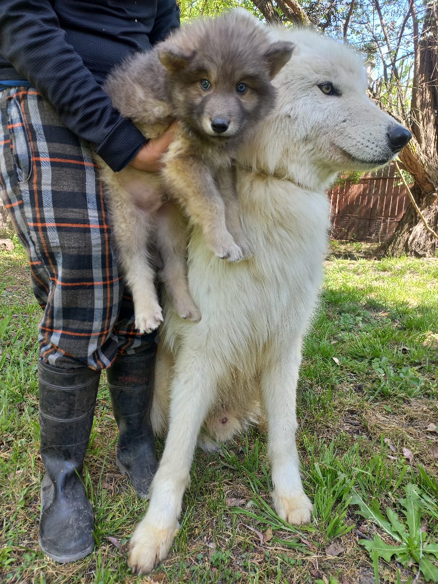 Tundra es una loba medio contenido ártico. Su cruce con Tanka da bellos ejemplares de alto contenido. Los colores de esta pareja pueden variar entre el negro acerado, el gris y el blanco.